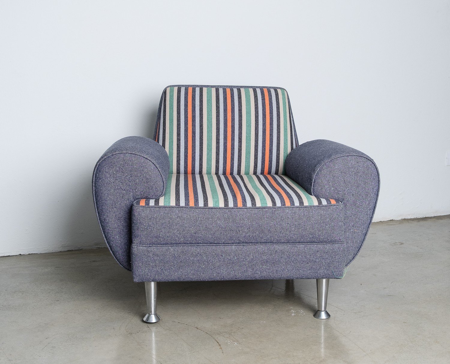 Padrão listrado fio tinto: as listras fazem parte da estrutura do tecido, garantindo cores sólidas e sem avesso branco.